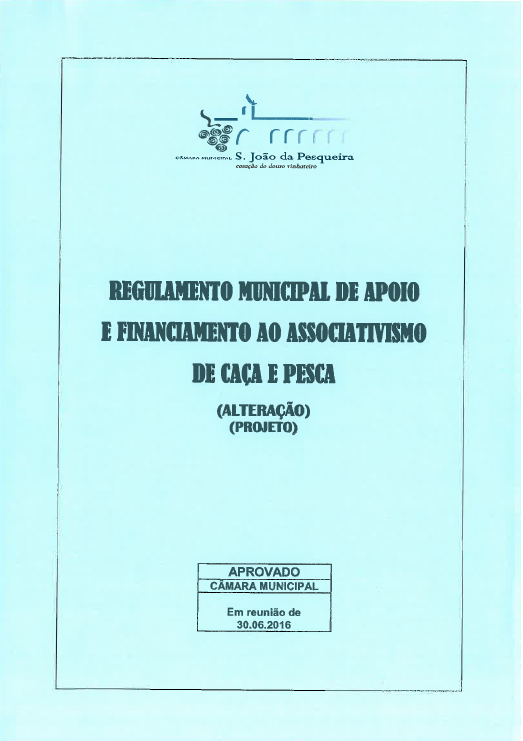 Projeto de Regulamento Municipal de Apoio e Financiamento ao Associativismo de Caça e Pesca