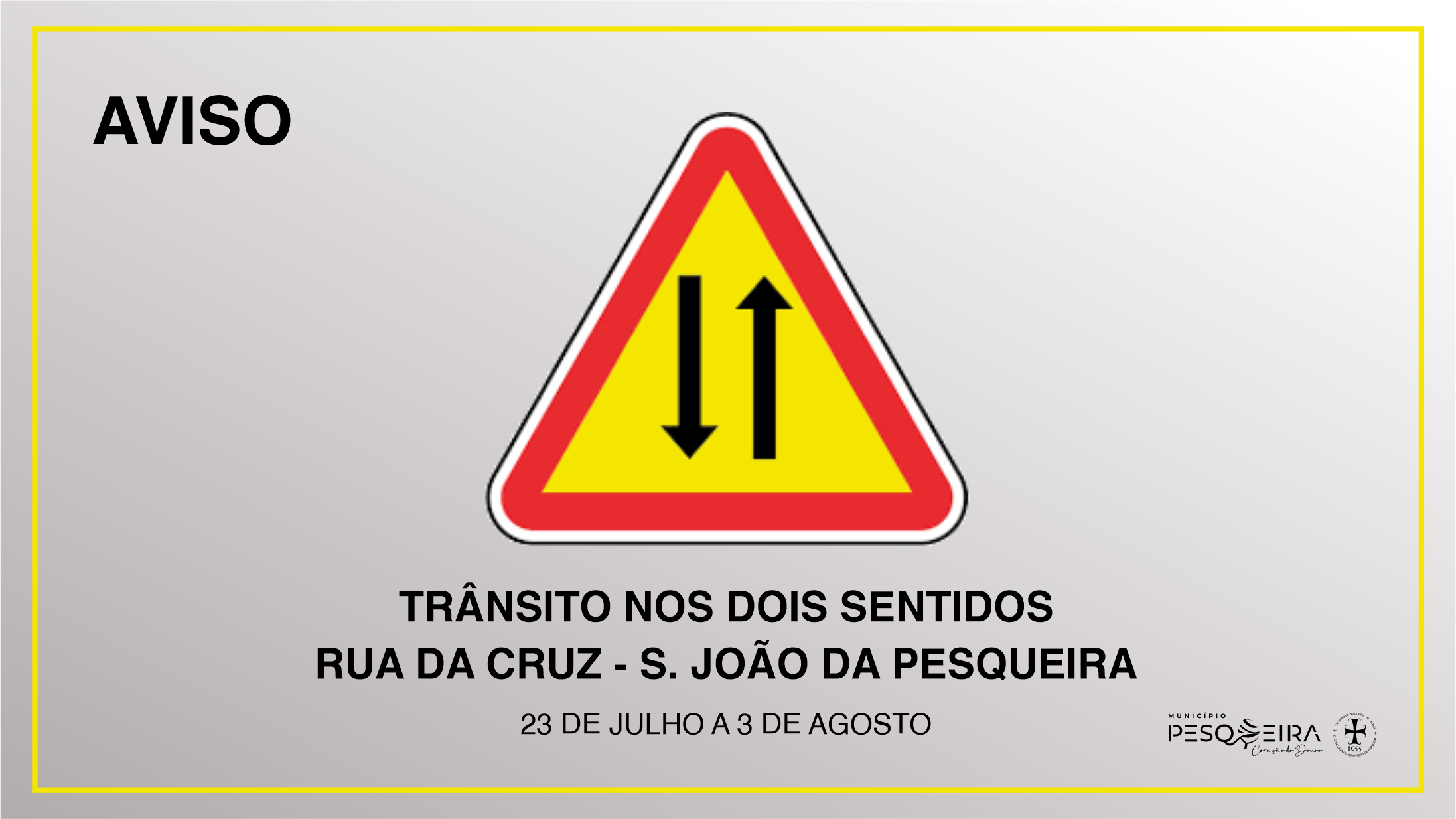 Inicial AVISO | ALTERAÇÃO DE TRÂNSITO | RUA DA CRUZ - S. JOÃO DA PESQUEIRA AVISO | ALTERAÇÃO DE TRÂNSITO | RUA DA CRUZ - S. JOÃO DA PESQUEIRA 22 Jul O Município de S. João da Pesqueira torna público o seguinte aviso: Voltar