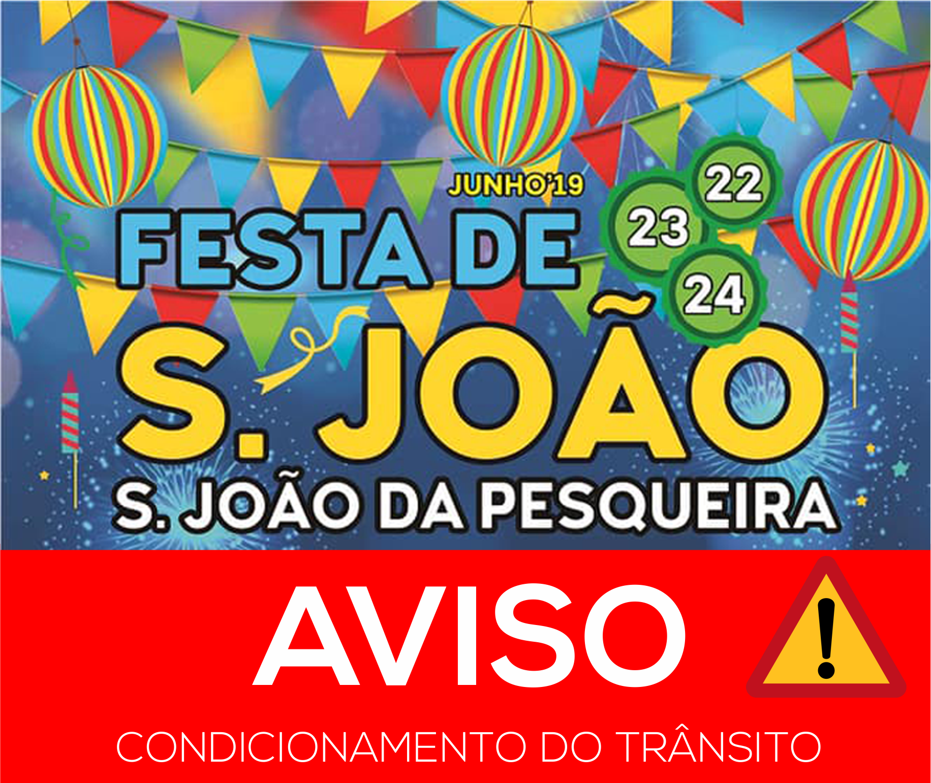 Inicial AVISO - CONDICIONAMENTO DE TRÂNSITO | FESTA DE S. JOÃO 2019 AVISO - CONDICIONAMENTO DE TRÂNSITO | FESTA DE S. JOÃO 2019 14 Jun O Município de S. João da Pesqueira torna público o segunte Edital Voltar