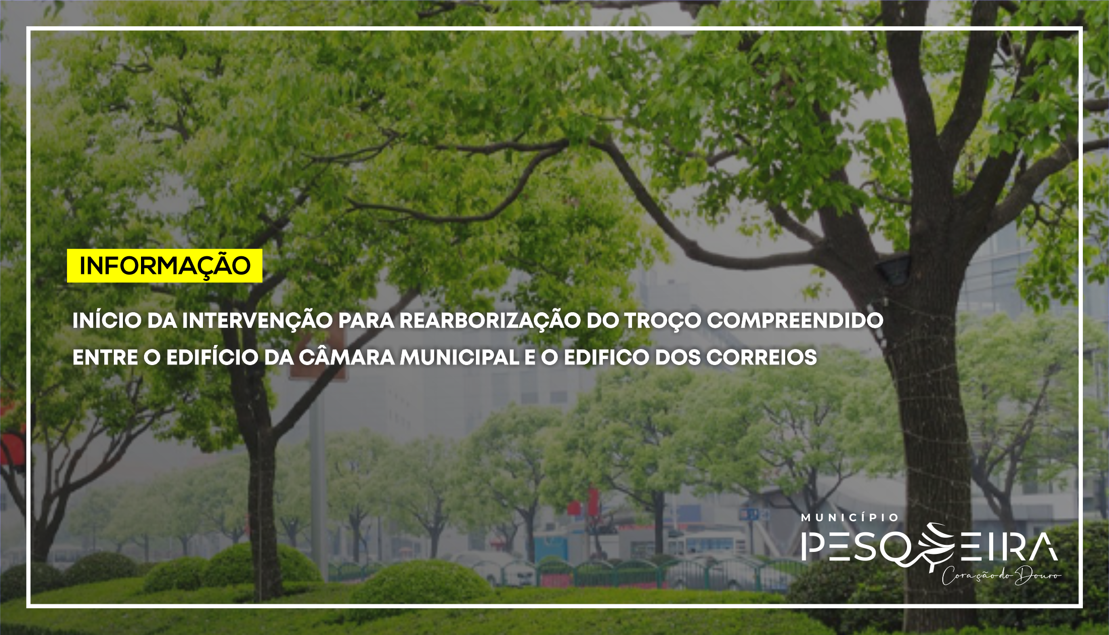 - AVISO | INÍCIO DA INTERVENÇÃO PARA REARBORIZAÇÃO DO TROÇO COMPREENDIDO ENTRE O EDIFÍCIO DA CÂMARA MUNICIPAL E O EDIFICO DOS CORREIOS