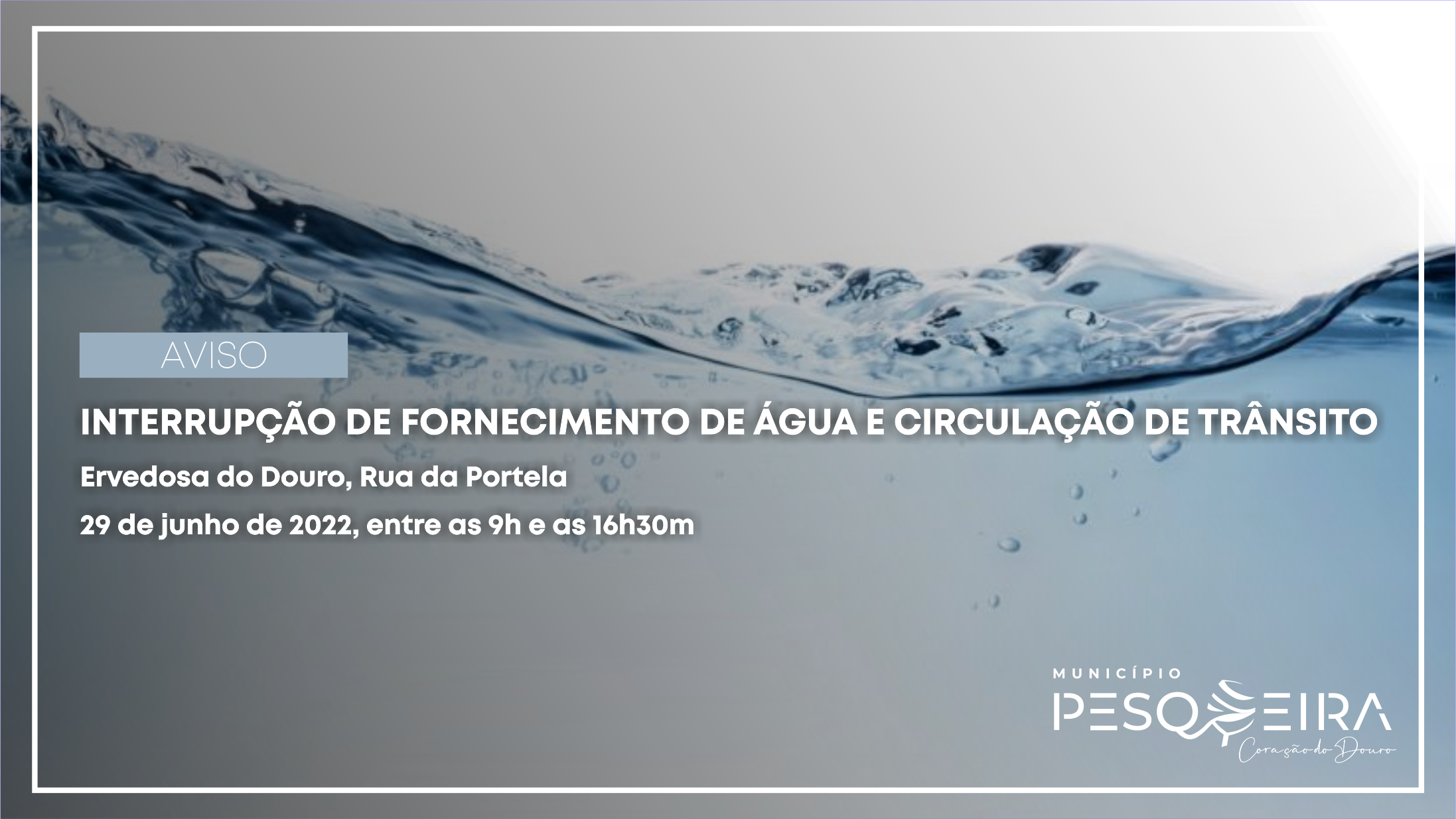 Inicial AVISO | INTERRUPÇÃO DO FORNECIMENTO DE ÁGUA E DE CIRCULAÇÃO DE TRÂNSITO AVISO | INTERRUPÇÃO DO FORNECIMENTO DE ÁGUA E DE CIRCULAÇÃO DE TRÂNSITO 27 Jun O Município de S. João da Pesqueira torna público o seguinte aviso: Voltar