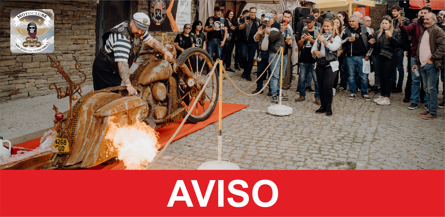 Avisam-se todos os munícipes que, devido à realização do Moto Convívio organizado pelo Moto Clube de São João da Pesqueira, fica proibido o estacionamento no parque automóvel da Mata do Cabo e no parque atrás do Tribunal, na Rua General Ramalho Eanes em São João da Pesqueira, nos dias 17 e 18 de maio.