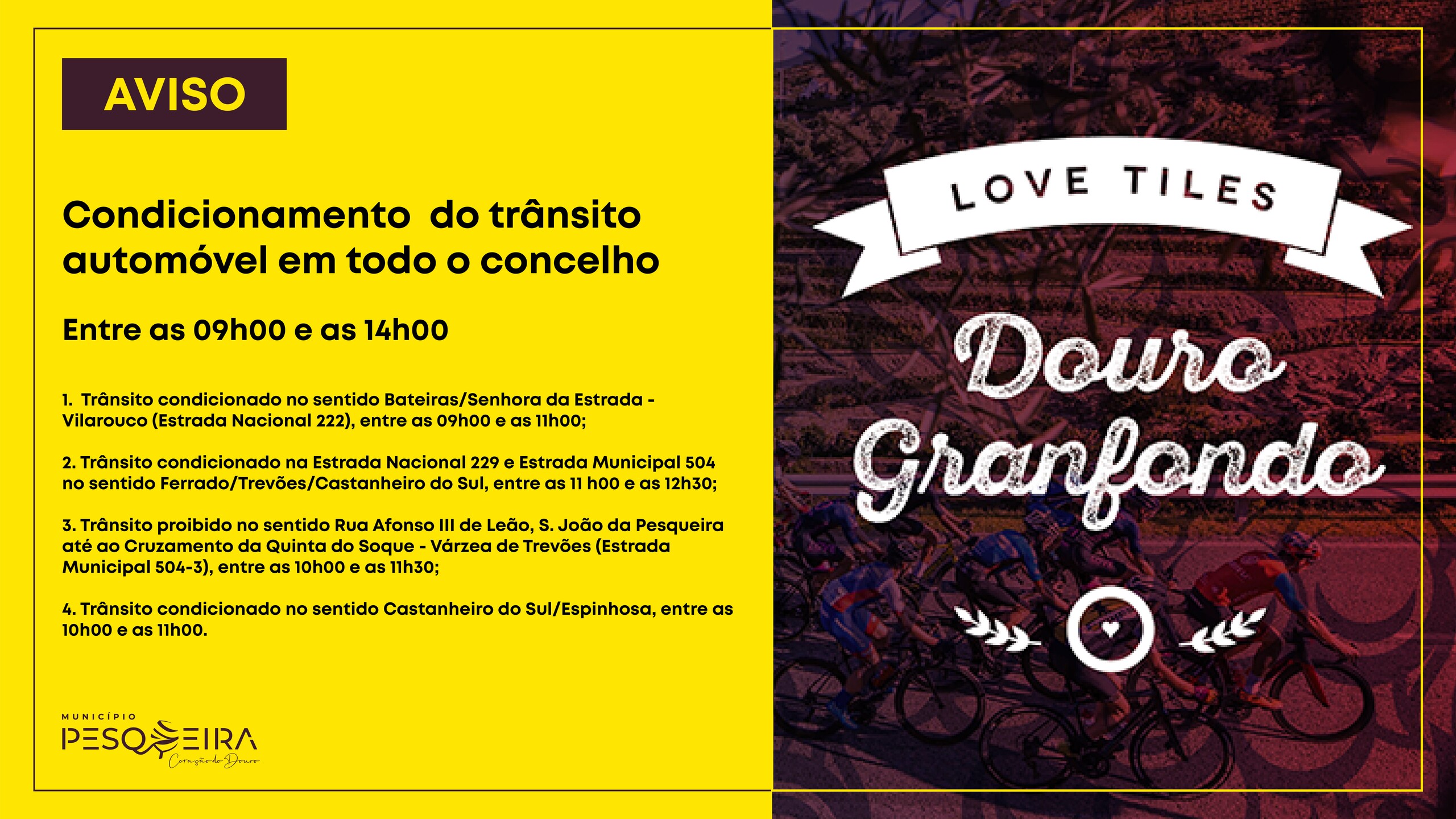 Inicial CONDICIONAMENTO DE TRÂNSITO | 7.ª EDIÇÃO DO DOURO GRANFONDO CONDICIONAMENTO DE TRÂNSITO | 7.ª EDIÇÃO DO DOURO GRANFONDO 21 Abr O Município de S. João da Pesqueira torna público o seguinte edital: Voltar