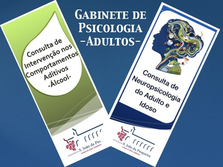 O Departamento de Acção Social e Cultural do Município de S. João da Pesqueira promove através do Gabinete de Psicologia para Adultos uma consulta especializada de intervenção nos comportamentos aditivos, nomeadamente nos problemas associados ao Álcool.