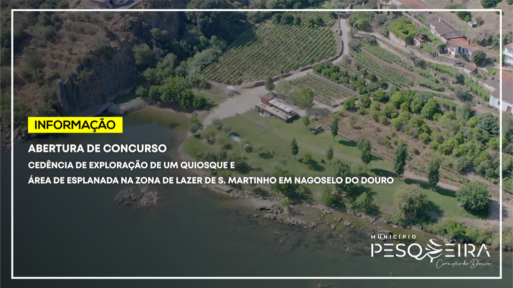 Inicial INFORMAÇÃO | CONCURSO - CEDÊNCIA DE EXPLORAÇÃO DE UM QUIOSQUE E ÁREA DE ESPLANADA NA ZONA DE LAZER DE S. MARTINHO EM NAGOSELO DO DOURO INFORMAÇÃO | CONCURSO - CEDÊNCIA DE EXPLORAÇÃO DE UM QUIOSQUE E ÁREA DE ESPLANADA NA ZONA DE LAZER DE S. MARTINHO EM NAGOSELO DO DOURO 12 Jun O Município de S. João da Pesqueira torna público o seguinte edital: Consulte os documentos: CADERNO DE ENCARGOS PROGRAMA DO CONCURSO Anexo III Voltar