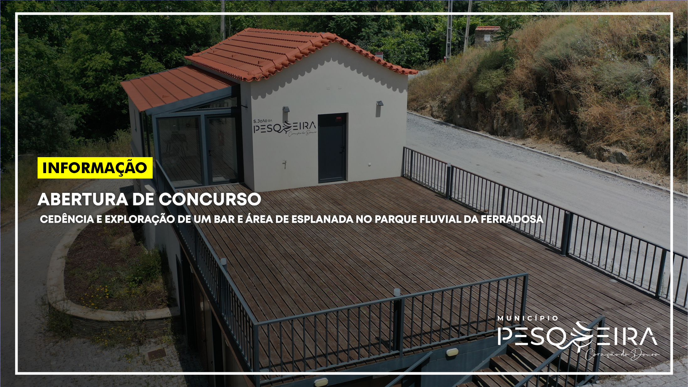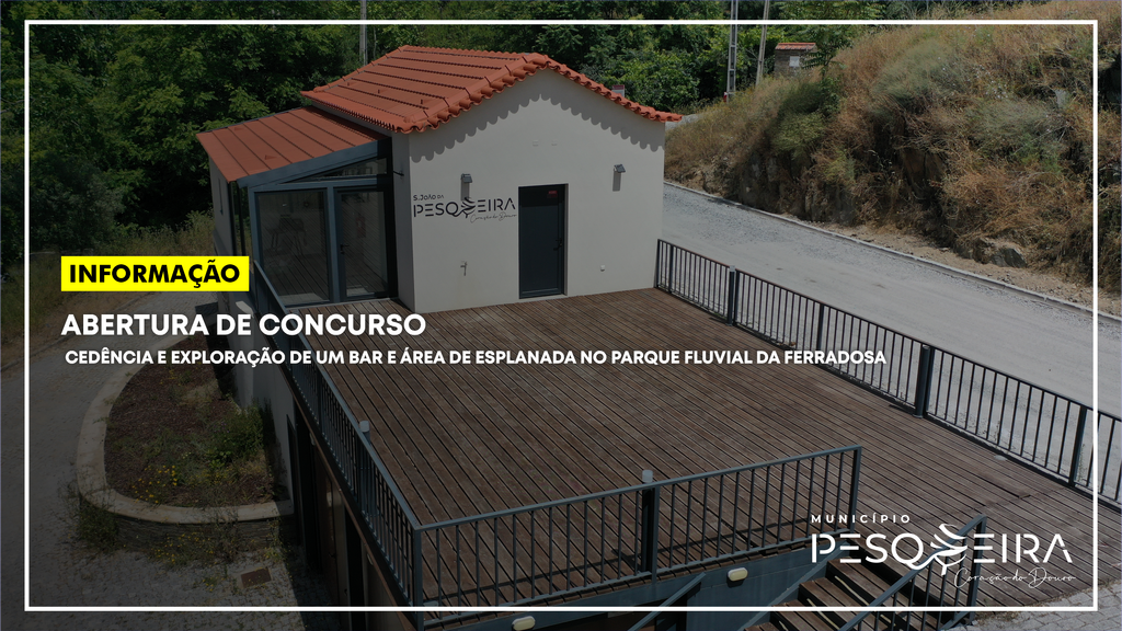 Informa-se que se encontra aberto o concurso para cedência e exploração de um bar e área de esplanada no parque fluvial da Ferradosa, no concelho de S. João da Pesqueira.