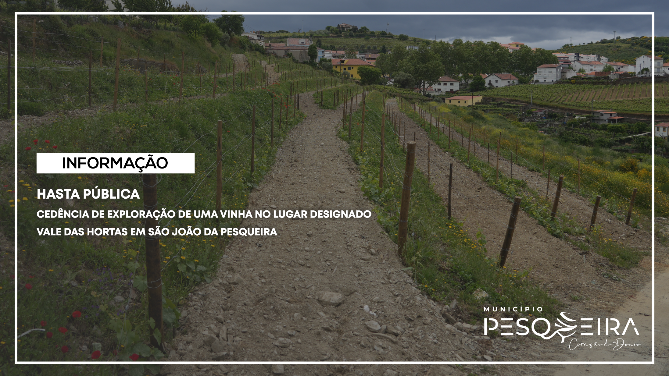 Inicial INFORMAÇÃO | HASTA PÚBLICA - CEDÊNCIA DE EXPLORAÇÃO DE UMA VINHA NO LUGAR DESIGNADO VALE DAS HORTAS EM SÃO JOÃO DA PESQUEIRA INFORMAÇÃO | HASTA PÚBLICA - CEDÊNCIA DE EXPLORAÇÃO DE UMA VINHA NO LUGAR DESIGNADO VALE DAS HORTAS EM SÃO JOÃO DA PESQUEIRA 12 Mai O Município de S. João da Pesqueira torna público o seguinte Edital: Documentos para consulta: Caderno de Encargos Programa de Concurso Voltar