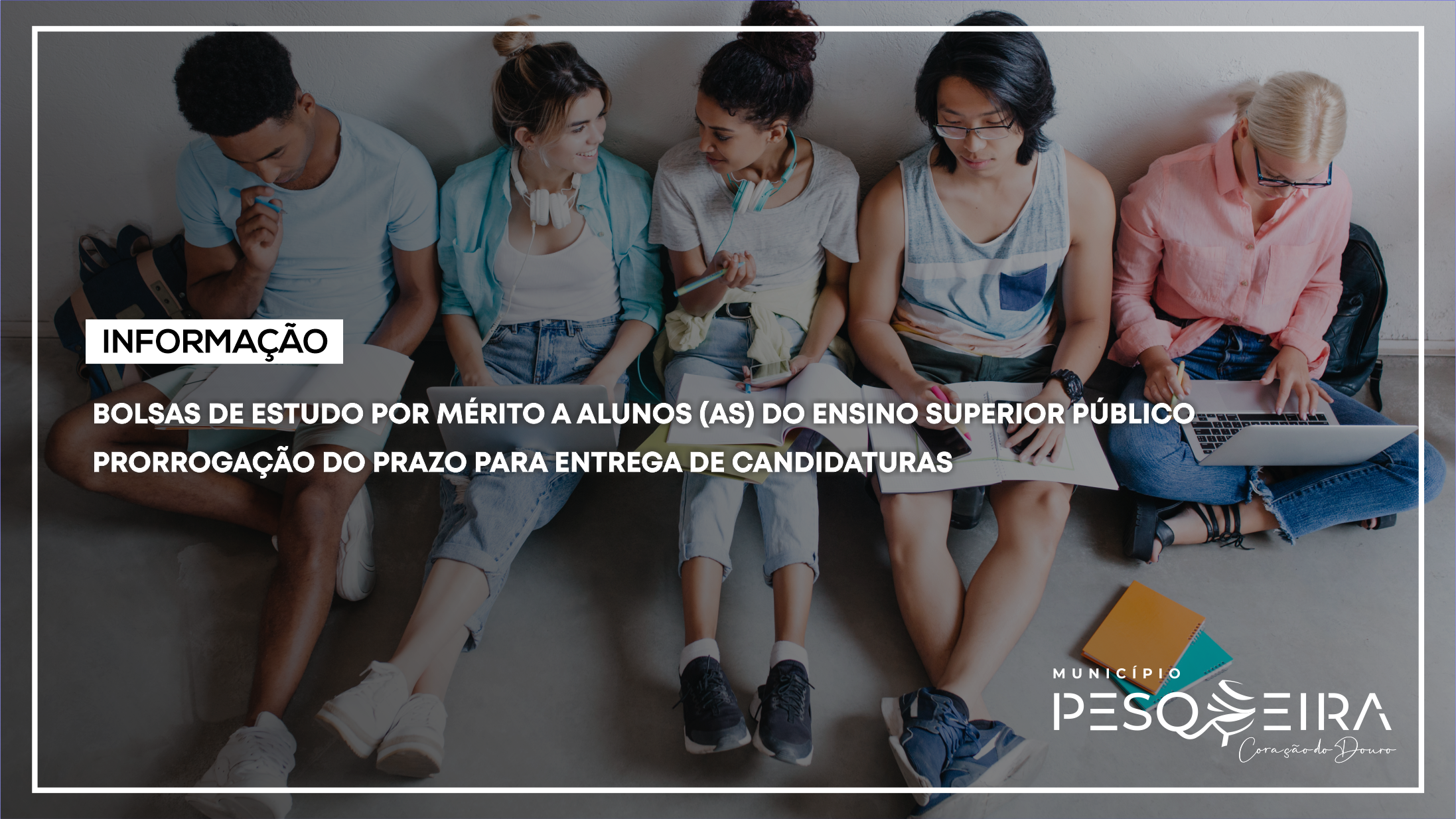 Informam-se os(as) estudantes do concelho a frequentar o Ensino Público Universitário que o prazo do concurso para atribuição de Bolsas de Estudo por Mérito foi prorrogado até ao dia 31 de outubro de 2025.