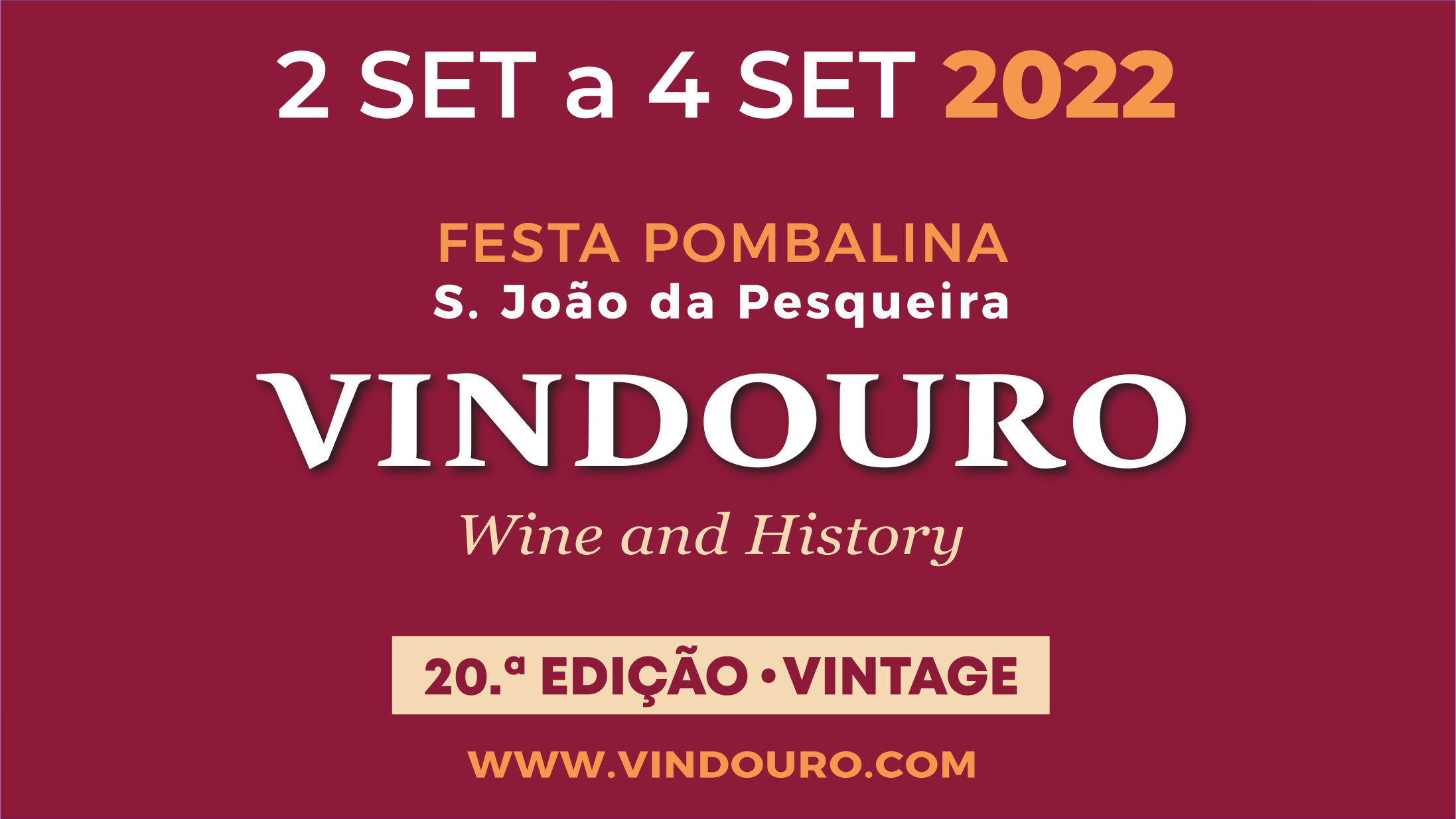 INSCRIÇÕES ABERTAS > RESTAURANTES, BARES, FEIRA DE ATIVIDADES ECONÓMICAS E MERCADO POMBALINO - VINDOURO | WINE AND HISTORY | FESTA POMBALINA | 20 ANOS