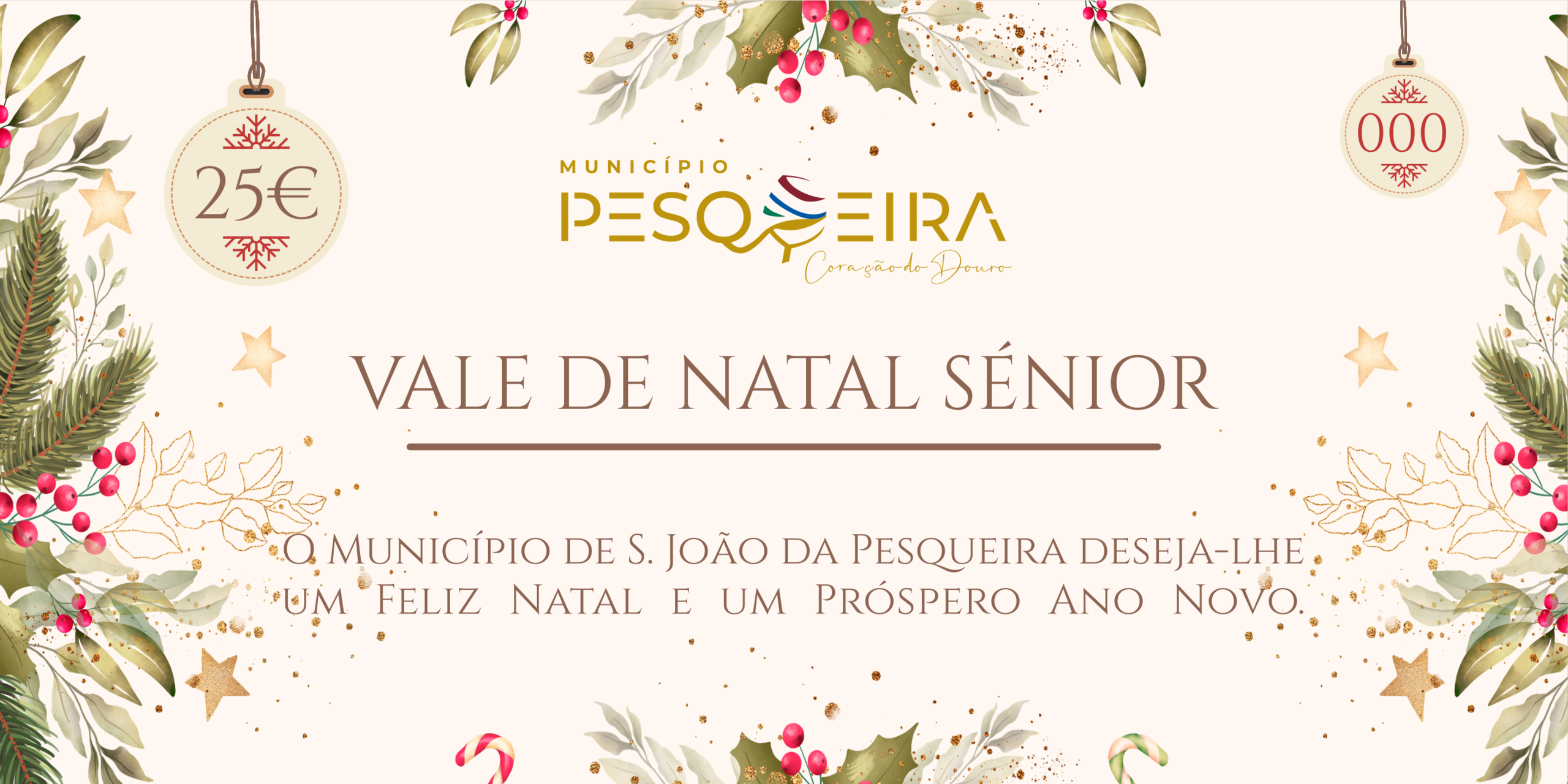 O Município de S. João da Pesqueira decidiu oferecer neste Natal um Vale de Natal de 25€ à população Sénior do Concelho, uma vez que este ano não será possível a realização da tradicional Festa de Natal.