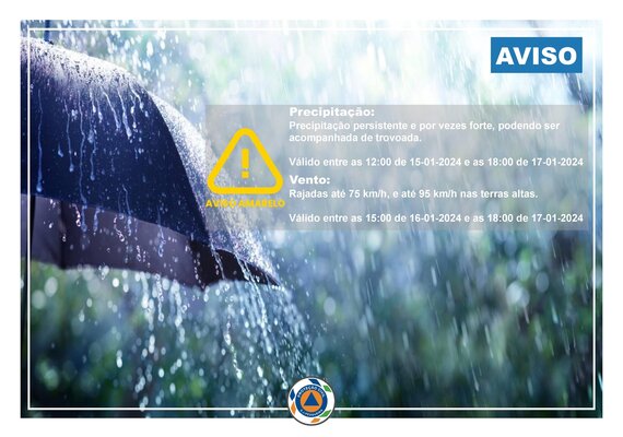 15 JanAVISO AMARELO IPMA: PRECIPITAÇÃO E VENTO - MEDIDAS PREVENTIVAS