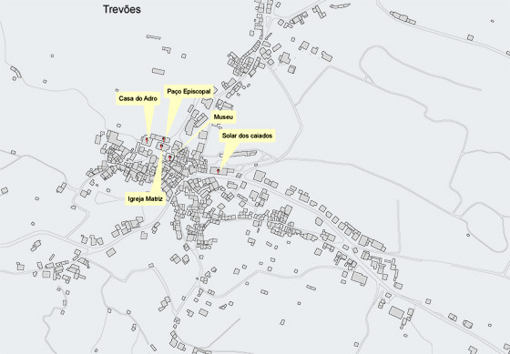 Church - The church of Trevões has as patroness Sta Marinha. There is no doubt of the medieval foundation of the church, when the old bell tower was demolished in the 18th century, stones with abbreviation and inscriptions were found and incorporated in the new structure, and there is reference to graves dug in the churchyard. From the original building, built between the 12th and 13th centuries, it remains part of a pilaster with interlace frieze and arc start, at the altar of the Holy Spirit, and a small sink of water, placed at the entrance of the church. The remaining work is thought to have been done around the XVI and XVI centuries, as the dogs of the main gate and the Triumphal Arch seem to indicate, and the corbels outside the chapel, of iconography and drape closer to the final Gothic language. The building, in excellent condition, has an austere façade, where a large pointed arch portal rips, surmounted by a big window of XVII century. Alongside the façade runs the imposing bell tower, built by Bishop Manuel Pereira de Vasconcelos in 1775. From the outside it should be highlighted the north gate, in pointed arch with chamfered soffit, pulpit, in the south facade, and the dogs decorated the chancel. The interior church, a single nave, has a paved floor with sepulchral covers and ceiling coated coffered adorned by volutes and angels. Over the entrance stands the choir, built in 1857, based on stone columns, which are incorporated into the holy water fonts. At the entrance, is the baptismal font, of granite, decorated by buds, dated from the XV/XVI century. On the side of the epistle, opens the chapel of Melos, of octagonal wooden ceiling, decorated with imposing Mannerist altarpiece, gold and polychrome, with boards painted with tempera, based on granite altar. The cross arch with decorated small columns, is entirely coated gilded national style, playing the theme of stylized branches and "puttis" holding grapes. The main Chapel, with ceiling lined with wood boxes, painted with plant motifs crowned by the episcopal coat of arms, has a gilded altarpiece of national style. On the wall behind the altarpiece there were recently put uncovered two panels of frescoes, dating from the 16th century. Chapels From the religious heritage there it should also be highlighted a remarkable set of chapels: -The Chapel of the Mártir S. Sebastião, traditionally referred to as primitive church; -The Chapel of Nossa Senhora da Piedade, in the cemetery; -The Chapel of Nossa Senhora da Graça; -The Chapel of S. António; -The Chapel of Santa Barbara; -The Chapel of S. Paio overlooking mountains where you can enjoy a vast panorama of the region. County Fountain- This is a fountain that reveals the Roman presence in the area. Episcopal Palace - The Episcopal Palace building belongs to the bishops of Lamego rising parallel to the north facade of the main church. It was built in 1777 by Bishop Manuel de Vasconcelos Pereira, who destroyed the previous building. Casa do Adro – was ordered to build in 1605 by Baltazar de Almeida Camelo. The main façade of the building has 8 windows, the main floor of the balcony with iron railings; and those of the ground-planted guillotine spruce in “peito de rola”. In the center is a portal with 2 scrolls that support the coat of arms of Almeidas, Coutinho and Camelo. Solar dos Caiados – developed from Rua dos Gatos with Rua da Restauração, there is one of the best buildings of the village either by the architectural quality or its condition. This building of the XVII century, of longitudinal plant, is structured in two buildings of different heights due to the street where the slope is located. Solar dos Melos - Also known as Caiado Ferrão, was built in 1671 by Francisco de Almeida Caiado. The original building, which had already a chapel dedicated to Nossa Senhora da Conceição, maintains the central part of the house, with a step ladder attached. In the second half of the XVIII century, it underwent major works under the orders of Francisco Xavier de Almeida Melo Caiado e Vasconcelos, having become one of the best houses in the region. The works between the 60s and 70s of the XVIII century, according to the date on the front of the chapel (1768) and inside (1771), partially alter the house and the chapel. This chapel dedicated to Nossa Senhora da Conceição was classified as Public Interest in 1970. |