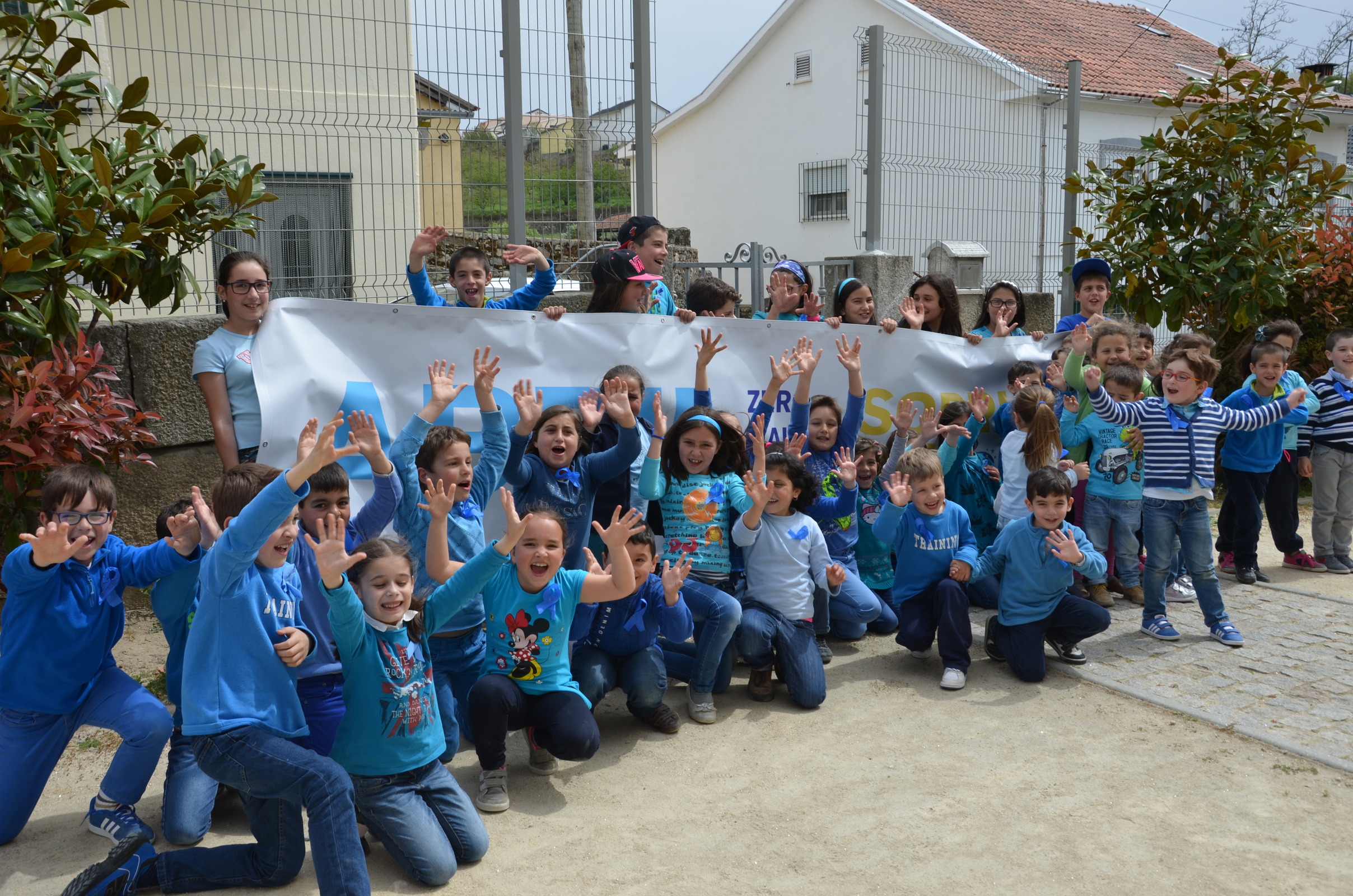 Por volta das 14 horas, saímos da escola e fomos até ao largo da Praça. Aí o senhor Padre Amadeu falou um pouco sobre o tema. Acompanhados por algumas pessoas que estavam na Praça, regressamos à escola a dizer “Não queremos maus tratos”. De seguida, todos os meninos largaram os balões azuis.