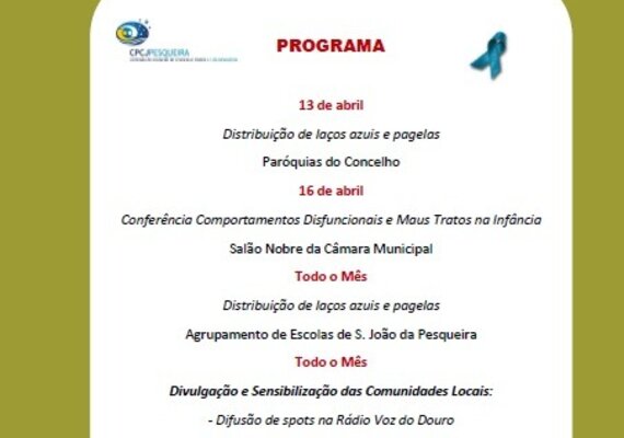 No âmbito das comemorações do Mês da Prevenção dos Maus Tratos na Infância, serve o presente, para divulgarmos o programa das ...CPCJ -