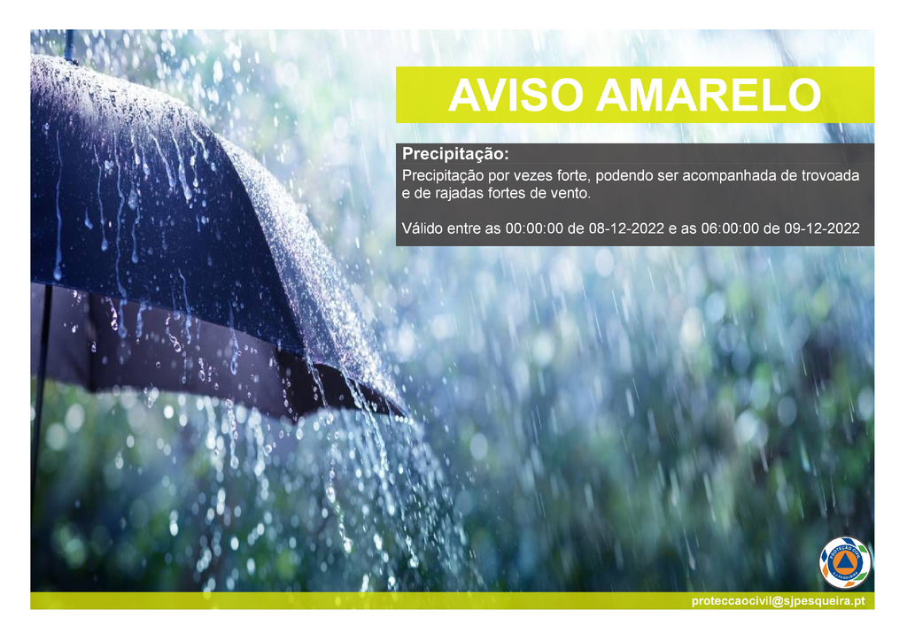 AVISO AMARELO IPMA: PRECIPITAÇÃO - MEDIDAS PREVENTIVAS