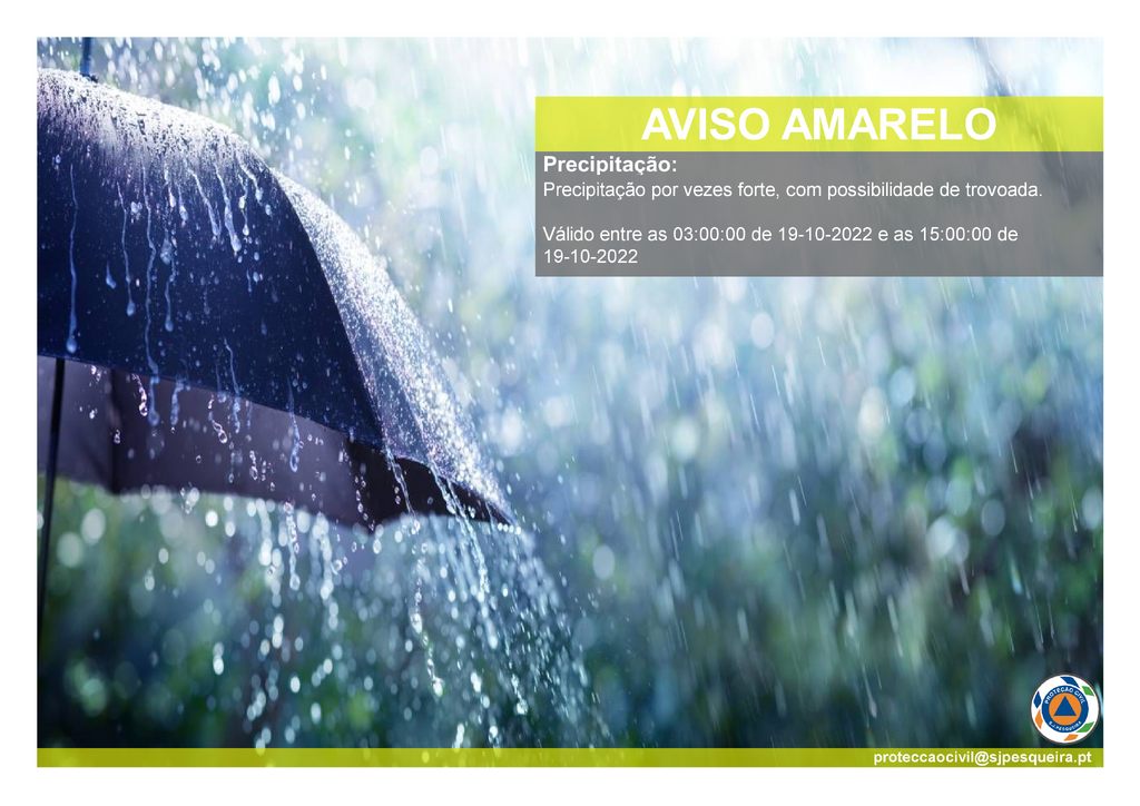 Prevê-se precipitação forte e persistente, entre hoje e amanhã, com acumulação significativa nas bacias hidrográficas do Norte, importando manter a vigilância para antecipar o aumento da cota dos cursos de água.