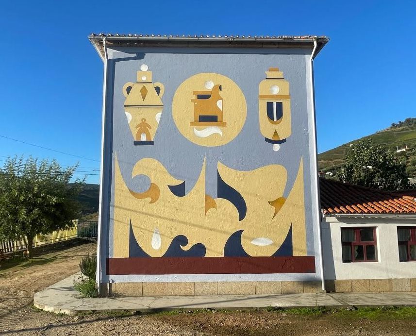 Numa das laterais do edifício da antiga escola primária, o artista criou um mural com representações simbólicas de objetos que encontrou na casa museu de Nagoselo do Douro (Casa D´aldeia), bem como silhuetas que remetem para as ondas do rio Douro, das montanhas e vinhedos que tão bem caracterizam esta região vinhateira.