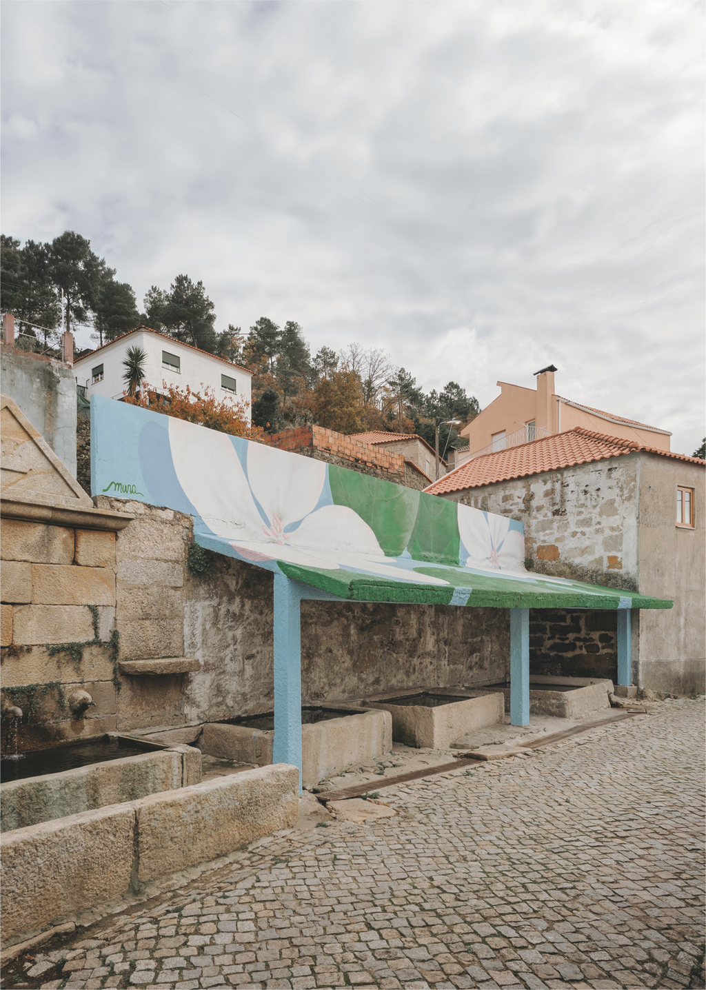 Inspirada em espécies botânicas, a artista vê na arte uma forma de homenagear a natureza. Em cada mural revela uma sensibilidade local, retratando as plantas características da região no seu período floral. Nesta obra encontramos os bagos de uva e a flor de macieira — frutos e flora típicos da aldeia vinhateira — reunidos numa celebração da natureza que cresce nas margens do rio Douro.