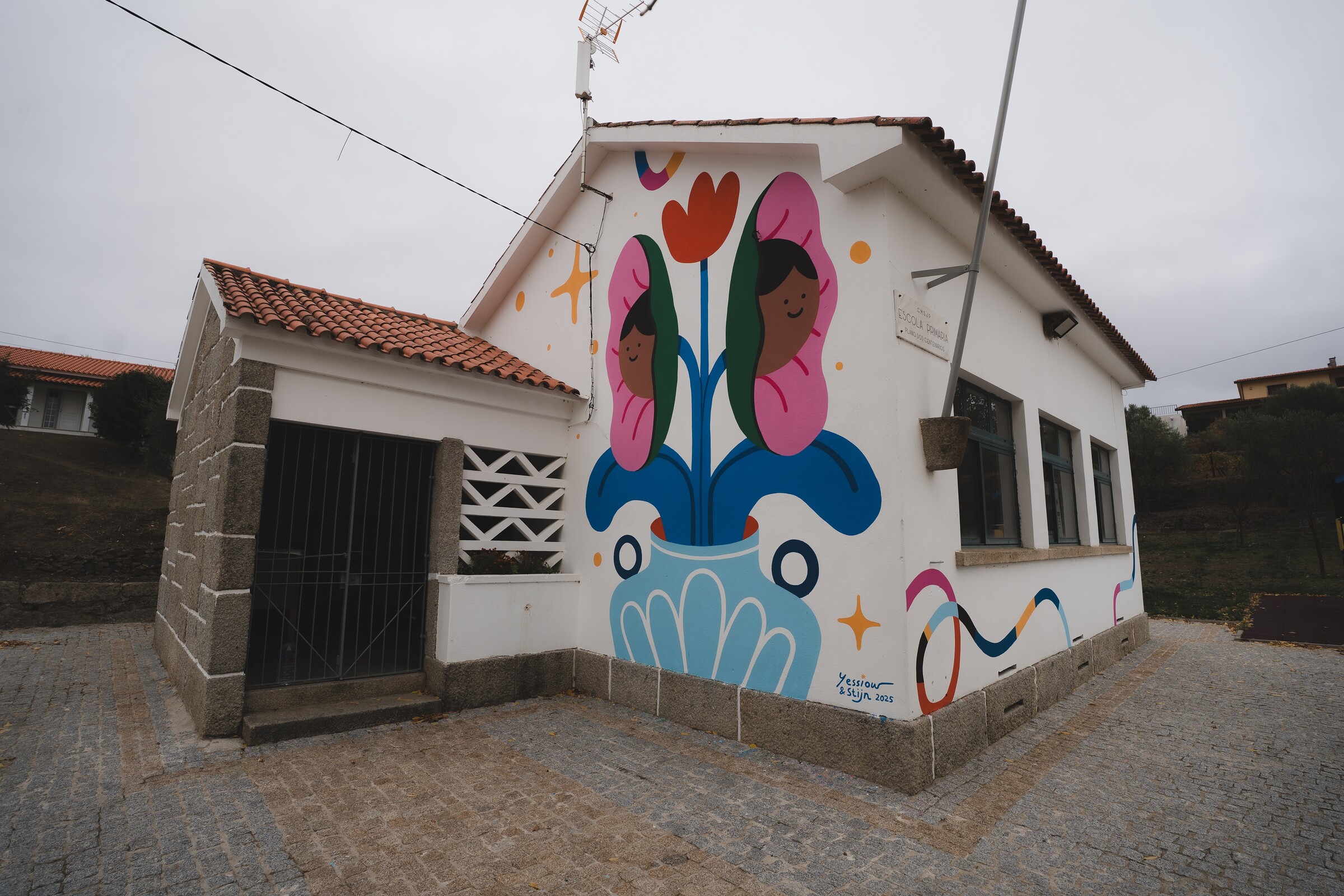 Mural que representa duas flores com rosto a nascer do mesmo vaso, simbolizando o diálogo entre gerações. A obra reflete a importância de escutar as memórias do passado e os sonhos do presente, preservando viva a tradição. O mural está também relacionado com uma antiga canção da localidade de Espinho, reforçando a ligação entre arte, identidade e herança cultural.