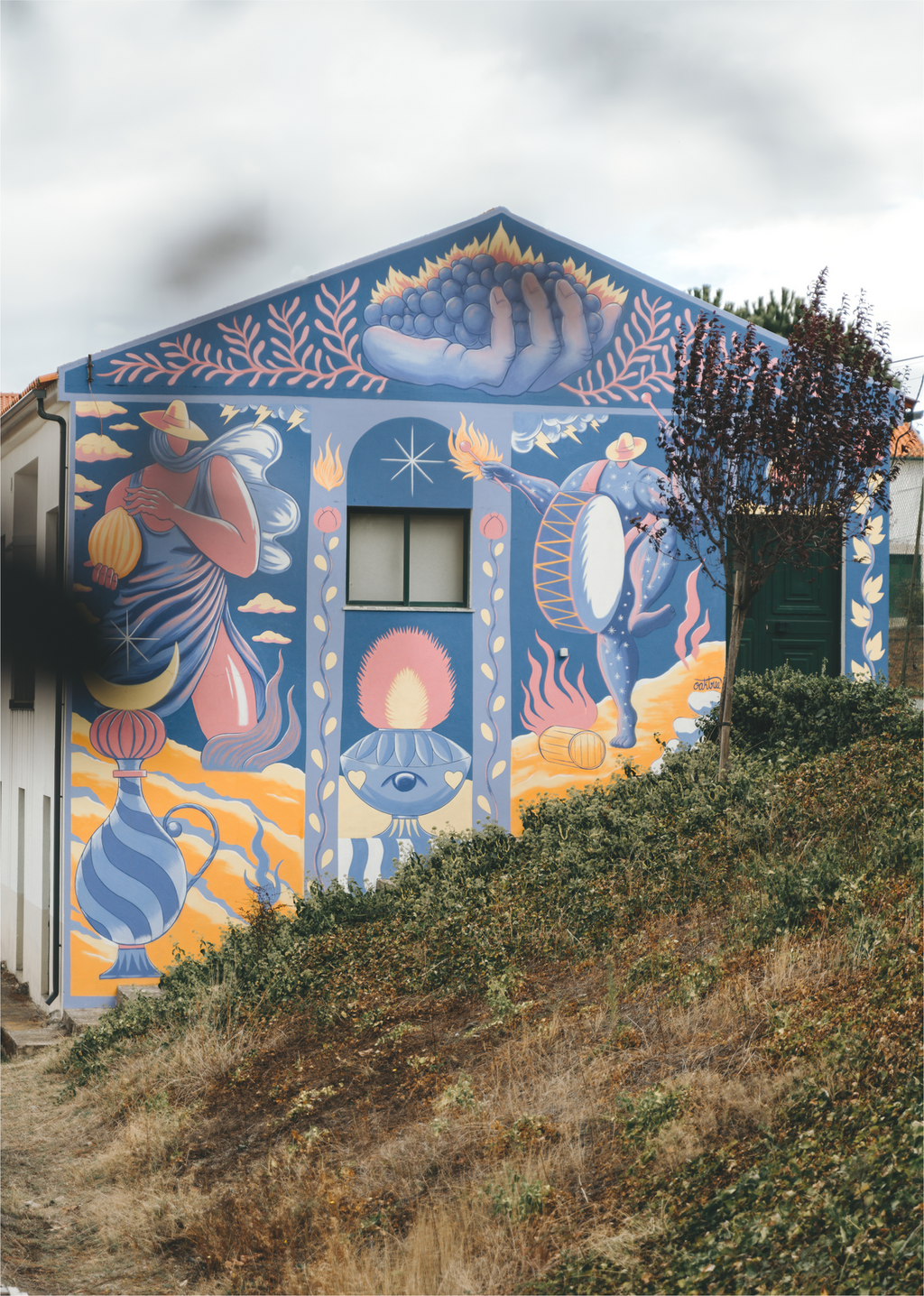 Este mural é inspirado na cultura da freguesia de Trevões, no espírito vibrante das festas da aldeia e nos seus símbolos regionais e religiosos, que se convertem em verdadeiros gigantes no horizonte do Alto Douro Vinhateiro.