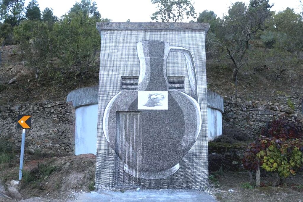 A água foi a fonte de inspiração para o artista que representou no seu mural um cântaro de barro típico Duriense. Este objeto singular foi fotografado pelo artista no museu “Casa D´aldeia”, aqui designado como cântaro ou cantarinha.