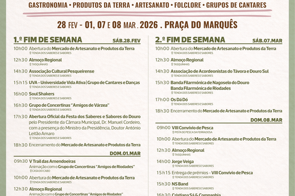 S. João da Pesqueira volta a encher-se de cor, música e tradição! Venha celebrar o melhor da gastronomia, do artesanato e da ...Turismo - Eventos28 Fev -