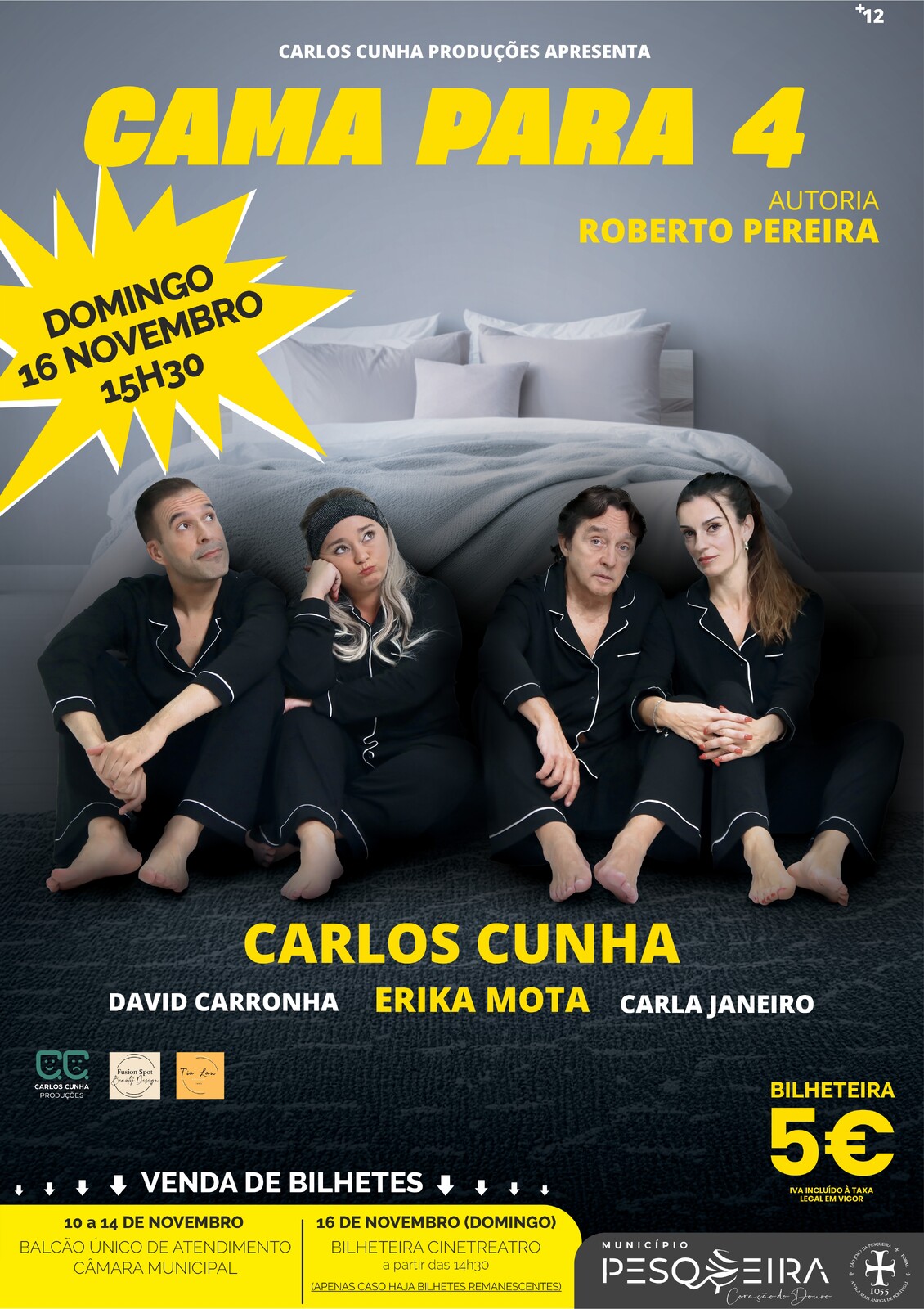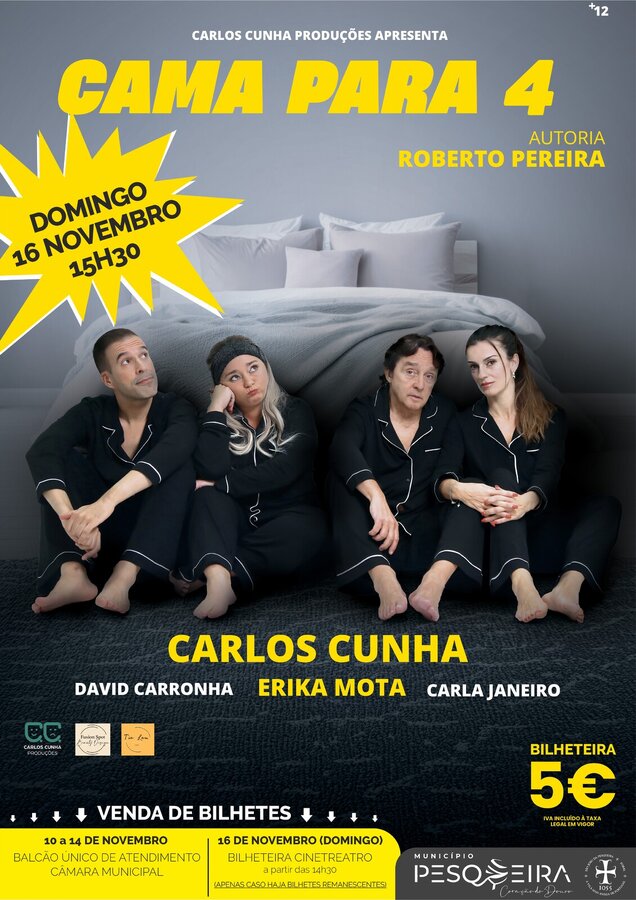 Inicial Turismo Cultura e Património Programação Cultural CAMA PARA 4 ( TEATRO COMÉDIA +12) CAMA PARA 4 ( TEATRO COMÉDIA +12) 16 Nov Adicionar a calendário 2025-11-16 15:30:00 2025-11-16 15:30:00 Europe/Lisbon CAMA PARA 4 ( TEATRO COMÉDIA +12) Evento Voltar